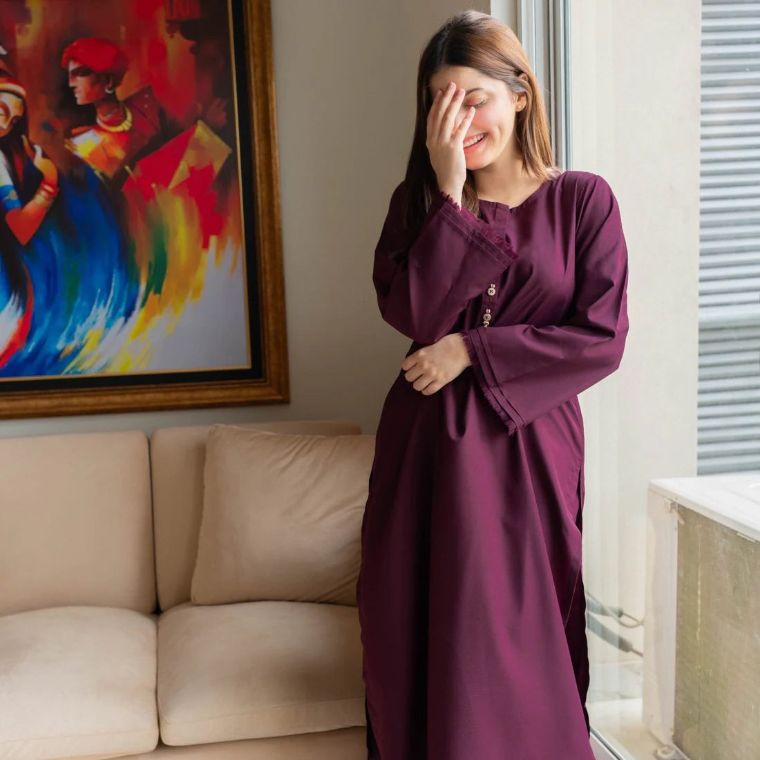 ● Fit: Flowy silhouette ensuring comfort with an elegant drape.