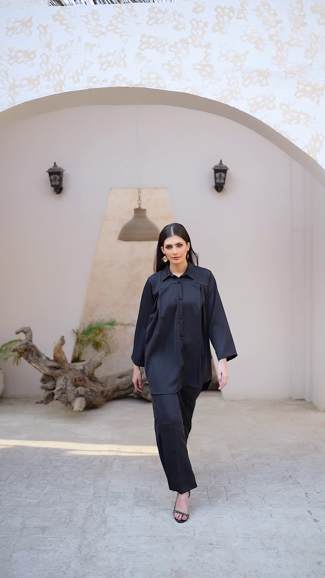 This plain black co ord set is a must-have for any fashion-forward individual looking to make a statement. The sleek design exudes sophistication while providing endless styling options. Elevate your look with this versatile set and enjoy the added confidence it brings.
